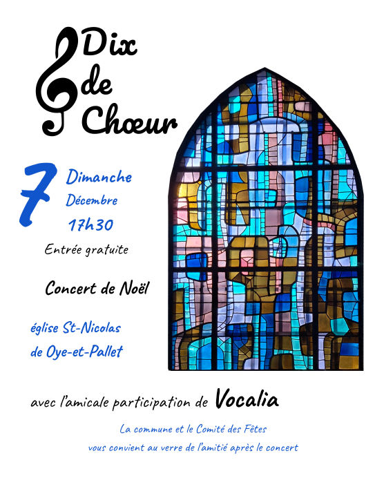 Nous vous attendons nombreux pour le dernier concert de l'année, à l'église de Oye-et-Pallet, le dimanche 7 décembre 2025, à 17h30.